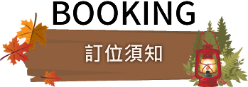 1、預訂營位後請於3日內完成訂金支付(全部費用之50%),匯款完成後,請粉絲專頁上發送私訊或簡訊告知,訂位日期、聯絡人姓名、聯絡電話、預訂區域及帳數、帳號末5碼,我們確認匯款完成後才算完成訂位喔!(3日內未完成匯款確認者,我們會取消您的訂位不另做通知)。